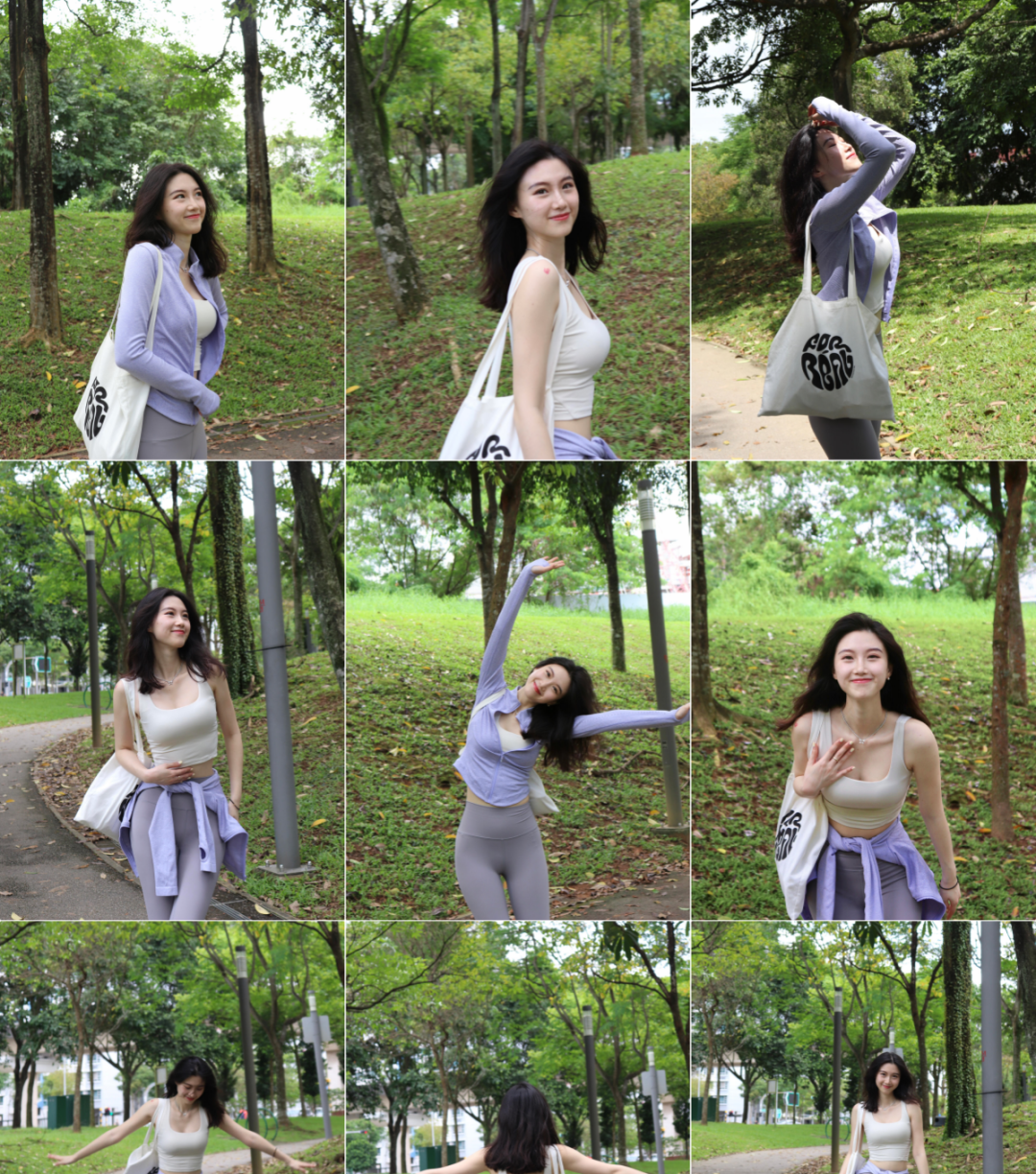 这套户外运动穿搭本身就很有青春感,再配上公园草地和树影,随手一拍都很有阳光,自由,松弛感,其实这类照片最重要的,不是动作多复杂,而是身体放松,表情自然,让自己像真的在散步,伸展,吹风,越是简单的小动作,越容易拍出气质和生命力,希望你下次出门运动或散步时,也能拍到属于自己的那份自然又漂亮的好状态, |